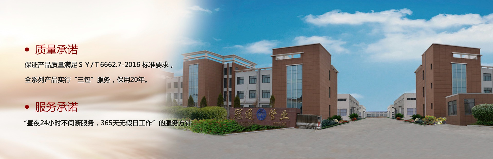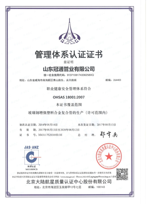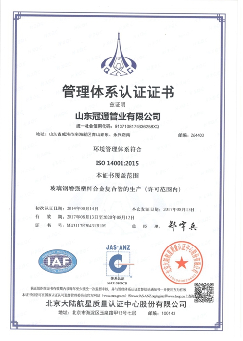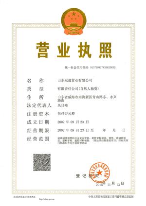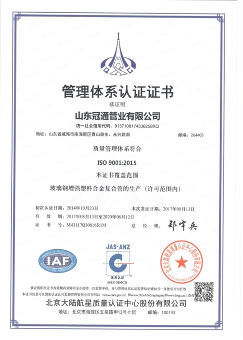 山東冠通管業有限公司成立于2002年,坐落于山東省“四大藍色經濟區”之一的威海南海新區,注冊資本5000萬元,是一家集非金屬復合管道及管件研發、制造、管道工程技術服務于一體的高新技術企業。