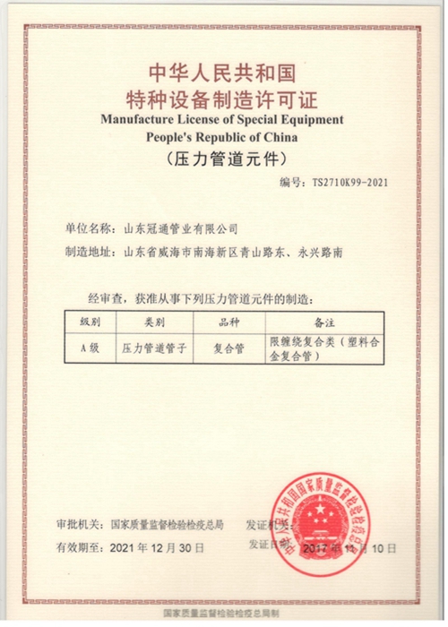 公司占地面積80000平方米,其中生產車間40000平方米;現有員工150余人,其中各類專業管理人員30多人,特聘行業專家、顧問6人。現有10個職能科室,7個生產車間,及山東冠通油氣裝備研究所、威海市油氣輸送柔性管道工程技術研究中心,哈工程、山東冠通海洋管道材料研究中心等研發平臺。